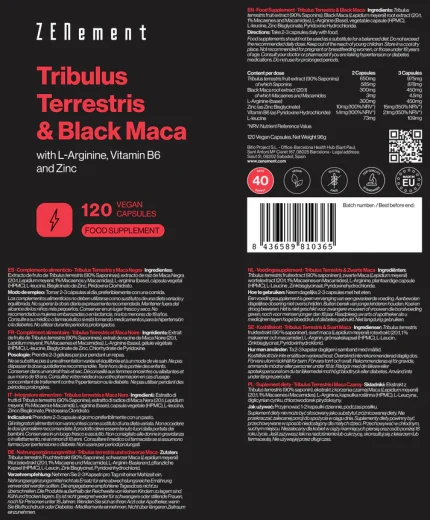 ZENEMENT TRIBULUS TERRESTRIS Y MACA NEGRA 120 CÁPSULAS VEGANAS
