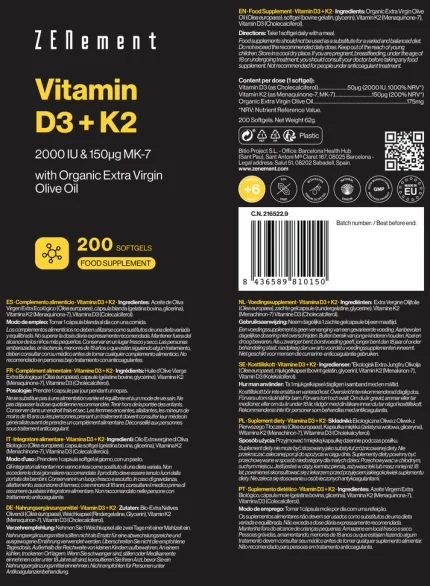 ZENEMENT VITAMIN D3 + K2 COLECALCIFEROL (2000 UI) & MK-7 (150 μg) – 200 SOFTGELS