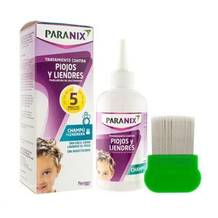 No causa dolor, ni molestia alguna. Entre sus propiedades se puede encontrar la acción física de asfixia de liendres, sumada a la deshidratación de la plaga. Paranix presenta su spray anti-piojos con función insecticida. Consta de un tratamiento agresivo para contrarrestar los piojos en una duración estimada de 15 minutos, logrando así, una erradicación determinante de esta afección en el cuero cabelludo.