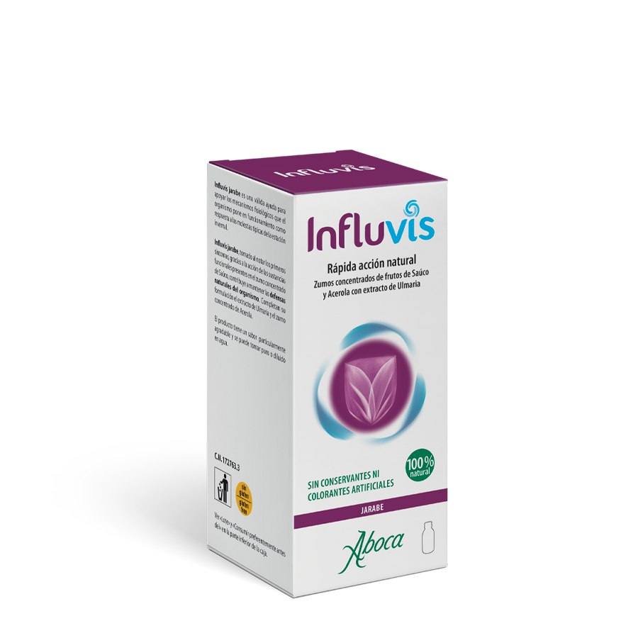 Influvis jarabe, tomado al notar los primeros síntomas, gracias a la acción sinérgica de las sustancias funcionales presentes en el zumo concentrado de Saúco, contribuye a mantener las defensas naturales del organismo. Completan su formulación el extracto de Ulmaria y el zumo concentrado de Acerola.