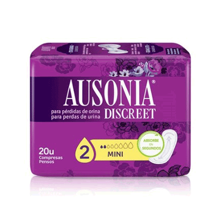 Ausonia Discreet Mini compresas nivel mini para la pérdida de orina ocasionales al estornudar o toser. Absorbe las pérdidas y el olor en segundos para ayudar a sentirte más fresca y cómoda.
