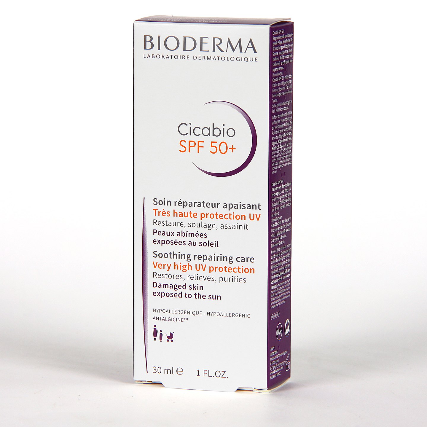 Es una crema reparadora con acción cicatrizante, que regenera y protege la piel dañada que se exponen al sol. Su alto nivel de protección solar absorbe gran parte de la radiación ultravioleta, limitando así el riesgo de hiperpigmentación después de la cicatrización.