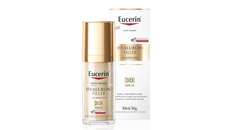 Un sérum para arrugas profundas que reduce las manchas de la edad Inspirado en los tratamientos dermatológicos, Eucerin Hyaluron-Filler + Elasticity 3D Serum es un sérum antiedad ligero e hidratante que trata eficazmente las 3 dimensiones del envejecimiento de la piel: 1. Manchas de la edad: La fórmula incluye Thiamidol. Patentado por Eucerin, Thiamidol actúa en el origen de la hiperpigmentación y está clínicamente demostrado que reduce las manchas de la edad y, usado de forma regular, previene su reaparición. 2. Arrugas: A medida que nuestra piel envejece, las arrugas se acentúan. Nuestra innovadora combinación de Ácido Hialurónico de alto y bajo peso molecular rellena visiblemente las arrugas profundas. El Ácido Hialurónico de alto peso molecular alisa las capas externas de la piel, mientras que el Ácido Hialurónico de bajo peso molecular (que es 40 veces más pequeño1) penetra más profundamente en las capas de la epidermis donde se generan las arrugas más profundas. 3. Pérdida de elasticidad: Se ha demostrado que su ingrediente activo, la Arctiina, acelera la renovación del colágeno en las células de la piel. Actúa conjuntamente con el ácido hialurónico de nuestra fórmula para mejorar la elasticidad de la piel. Está demostrado clínica y dermatológicamente que Eucerin Hyaluron-Filler + Elasticity 3D Serum reduce las manchas de la edad, rellena visiblemente las arrugas profundas, mejora la elasticidad y ofrece un aspecto radiante y rejuvenecido a la piel. 1 En comparación con el ácido hialurónico de alto peso molecular usado también en la fórmula.