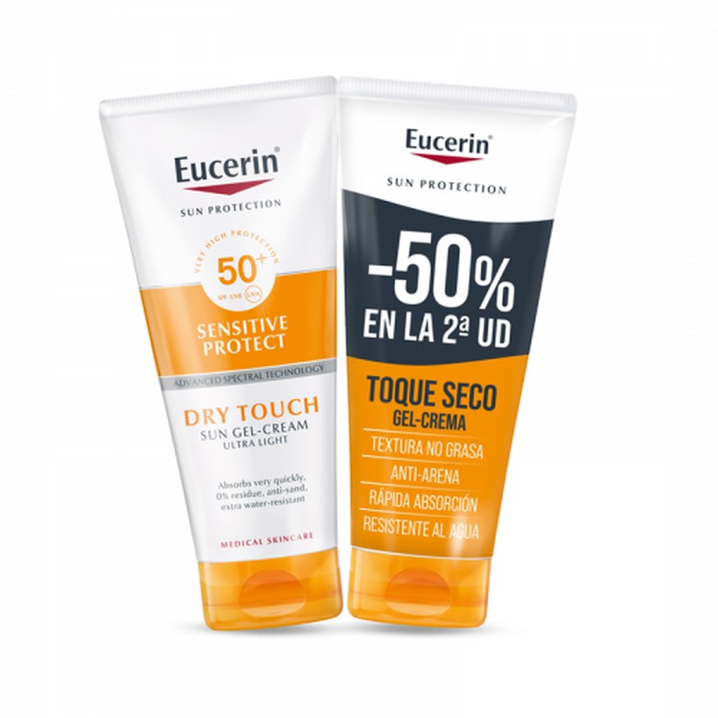 Protector solar ultraligero gel-crema que se absorbe rápidamente sin dejar residuos y deja un acabado seco al tacto inmediato. Eucerin Sun Gel Crema Toque Seco SPF50+ 200ml Protector solar ultraligero con textura de gel-crema que se absorbe rápidamente sin dejar residuos y deja un acabado seco al tacto inmediato.