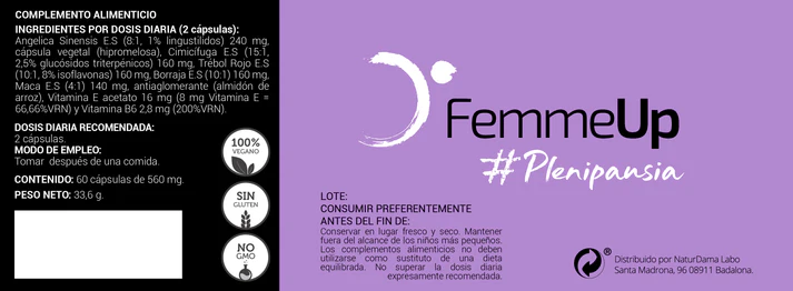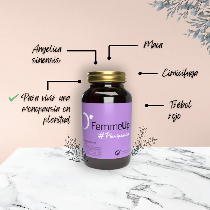 FemmeUp Plenipausia es el complemento alimenticio con extractos de plantas adaptógenas que te ayudará a cuidar tu salud para vivir una menopausia en plenitud.