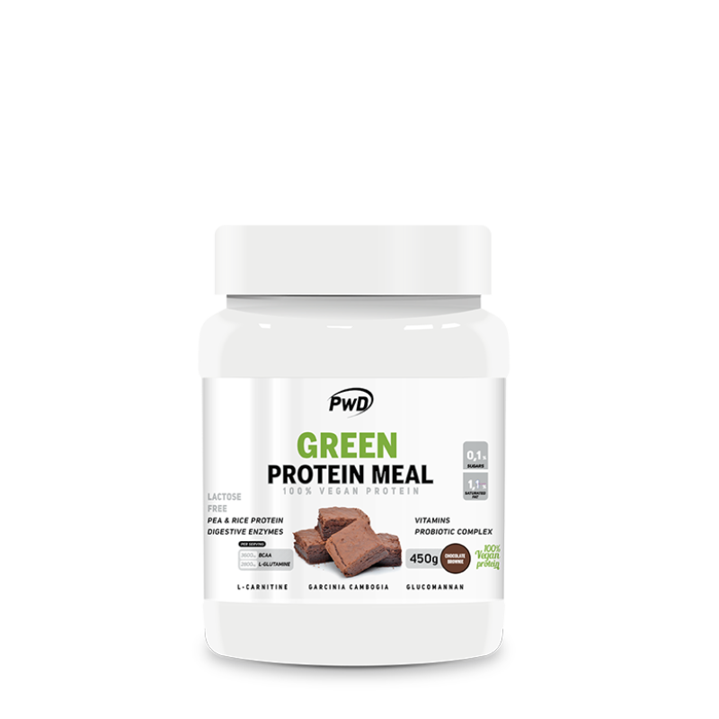 GREEN PROTEIN MEAL es una proteína apta para veganos compuesta por la combinación de proteína de guisante y de arroz con índices inapreciables de hidratos de carbono y grasa. Contiene un multivitamínico para complementar las carencias nutricionales de la dieta y L-Carnitina para un mejor transporte de la grasa a las células musculares donde ser quemada. También contiene fibras saciantes como la Garcinia Cambogia y Glucomanano.