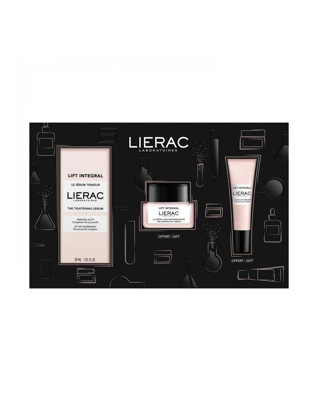 Lierac Lift Integral La Sérum Tenseur 30 ml + Rutina Reafirmante Antiedad Gratuita es un conjunto de 3 productos que ofrecen una rutina antiedad para todo tipo de pieles, incluso las sensibles. Sus fórmulas contienen el Complejo StructureLift, que refuerza la estructura de la piel actuando sobre sus elementos esenciales (colágeno, elastina, ácido hialurónico), así como sobre las glicoproteínas que los conectan. Combina :