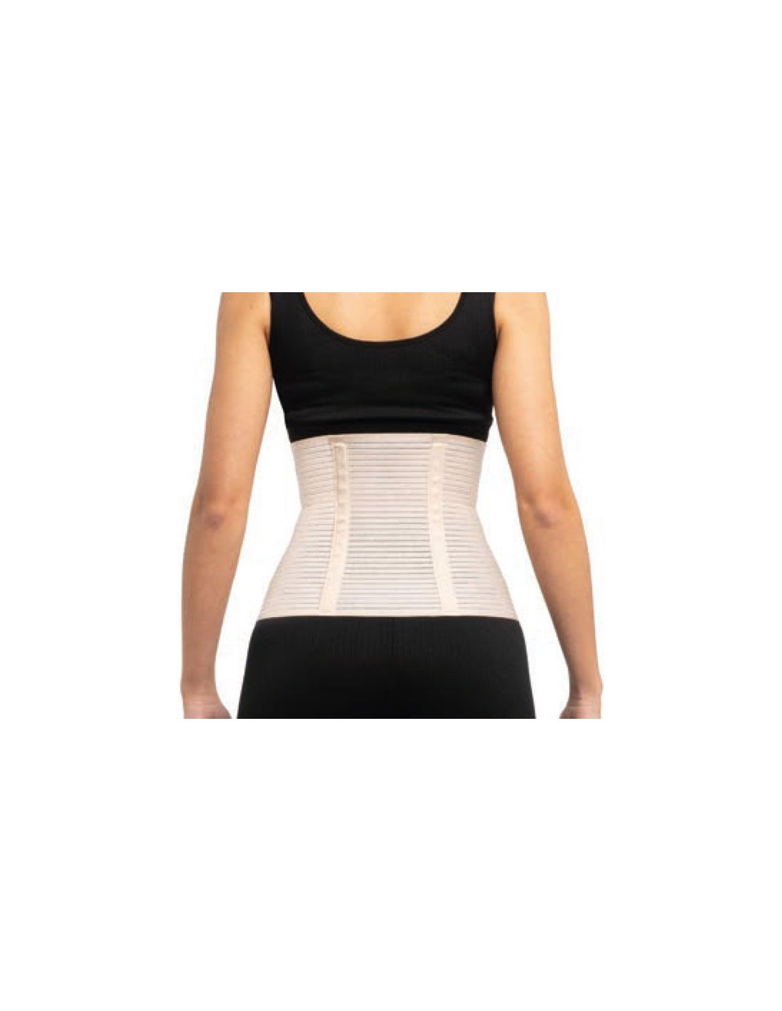 Incorpora cierre delantero tipo velcro, que permite graduar la compresión abdominal. Proporciona propiocepción y protección. Transpirable.