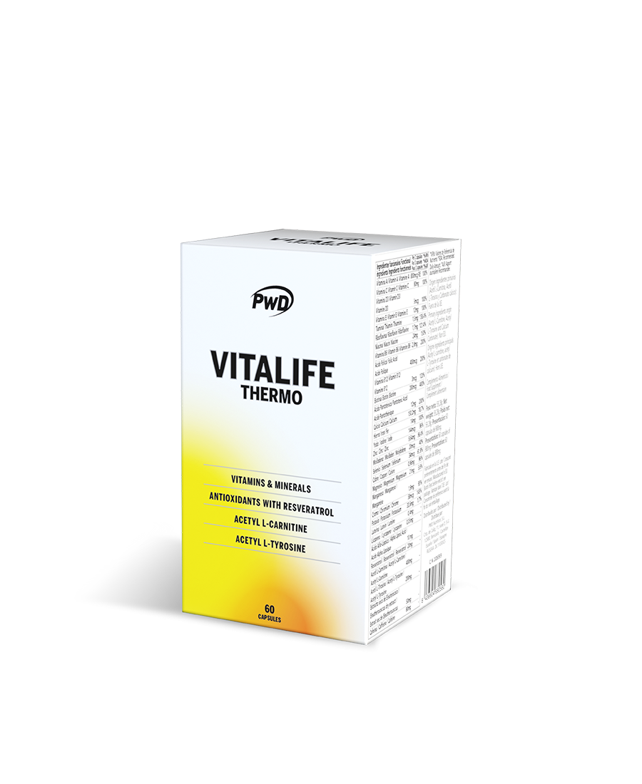 Vitalife Thermo es un complejo de vitaminas, minerales, antioxidantes y con ingredientes termogénicos. Indicado para personas con un alto desgaste físico con sensación de cansancio, agotamiento o fatiga. Personas con trabajos pesados, con turnos de trabajo, con dificultades para el descanso que les impide afrontar el día con energía, dietas de pérdida de peso o restrictivas y deportistas con un elevado desgaste físico y muscular.