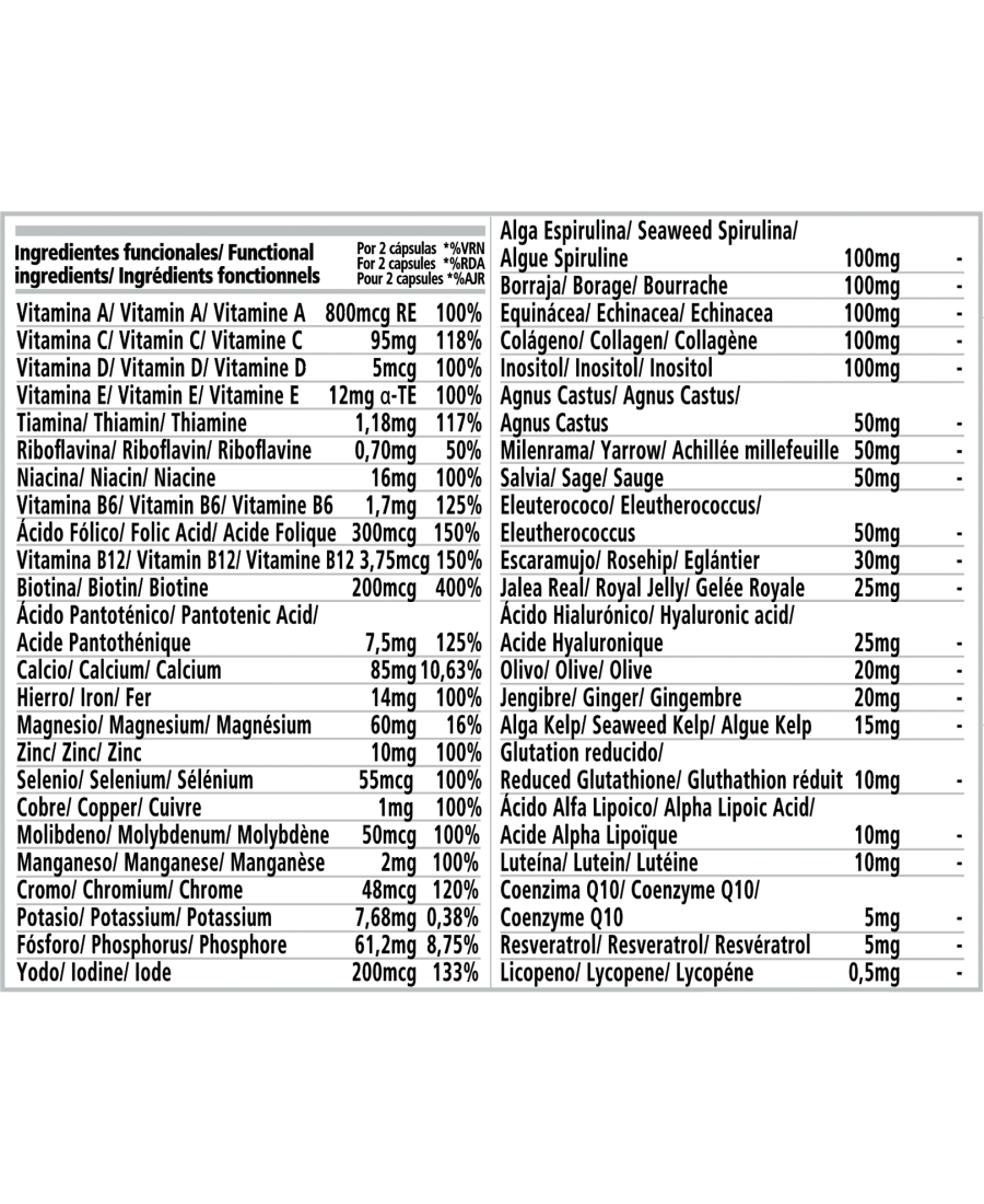 Los nutrientes necesarios para hombre y mujeres no son los mismos, deben estar adaptados ya que las necesidades son distintas. Vitalife Woman aporta de vitaminas, minerales, antioxidantes e ingredientes, todo ellos adaptados a las necesidades de la mujer en sus distintas etapas en función de la edad y las necesidades requeridas. Reforzado con más cantidad de Ácido Fólico. Una ingesta suplementaria de Ácido Fólico incrementa el nivel de folato materno. Ayuda en el crecimiento de los tejidos y en el trabajo celular, trabaja junto con la vitamina B12 y la vitamina C para ayudar al cuerpo a descomponer, utilizar y crear nuevas proteínas. Contribuye a la formación de los glóbulos rojos y a producir ADN, el pilar fundamental del cuerpo humano, que transporta información genética (2). Más cantidad de Biotina que favorece al crecimiento de pelo, piel y uñas mejorando su resistencia (1). La Biotina contribuye al mantenimiento del cabello en condiciones normales, al funcionamiento normal del sistema nervioso y al mantenimiento de las mucosas en condiciones normales.