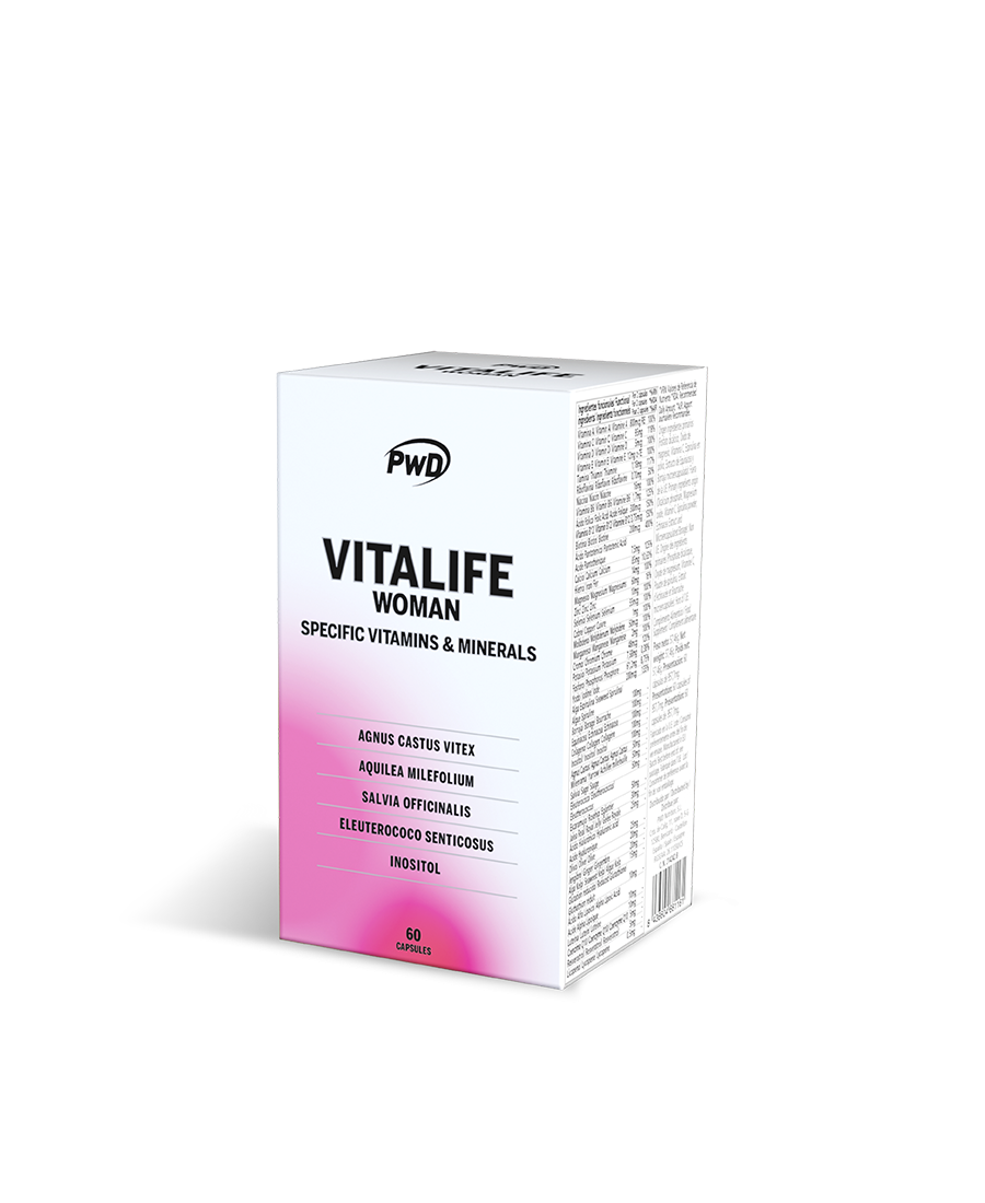 Vitalife Woman contiene Agnus Castus, que ayuda al estado premenstrual, contribuye a la reducción del hinchazón abdominal, retención de líquidos, interviene en los casos de sangrados irregulares y cuantiosos en algunas mujeres (3). Contiene Milenrama y Salvia, la cual es remedio natural con múltiples propiedades. La Salvia, después de la soja, es una de las plantas medicinales más utilizada para ayudar a aliviar las molestias de la menopausia, lo cual se debe a su alto contenido en fitoestrógenos (4). Esta combinación de ingredientes junto con la adaptación de los micronutrientes de Vitalife Woman hacen de este un producto un muy interesante de multivitamínico para las mujeres de todas las edades.