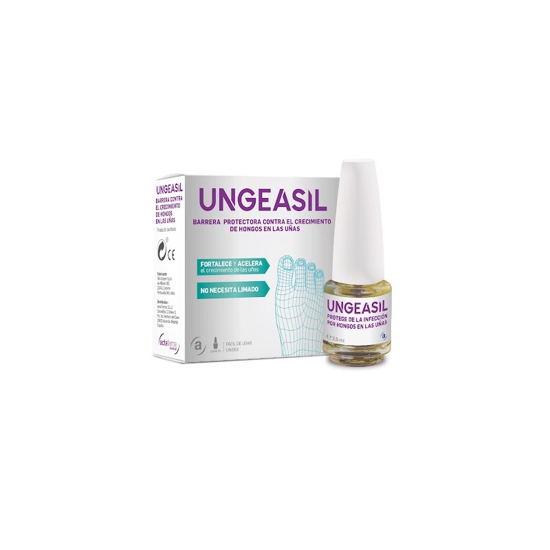 Ungeasil Esmalte 3.5 ml es un producto sanitario que actúa creando una barrera protectora y un ambiente desfavorable para el crecimiento de microorganismos en las uñas, como pueden ser los hongos.