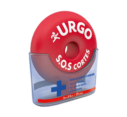 La banda autoadhesiva URGO SOS CORTES detiene el sangrado por compresión. Es extensible, autoadhesiva y fácil de usar, gracias a su diseño innovador que permite cortarla sin tijeras.