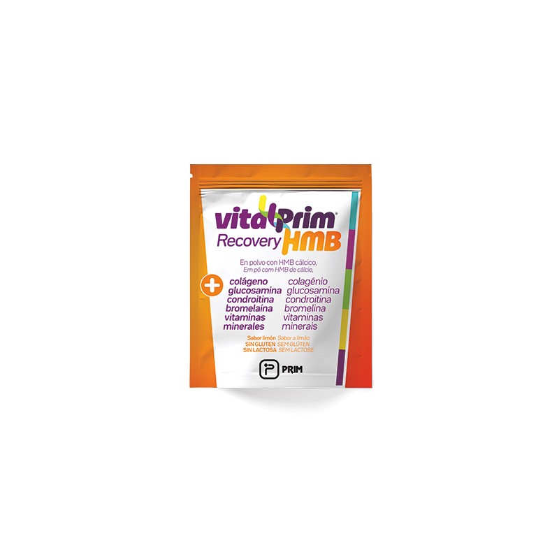 VitalPrim HMB con colágeno es un complemento alimenticio que incorpora, además de HMB, colágeno, condroitina, glucosamina, ácido hialuronico, magnesio, vitaminas y extractos de plantas.